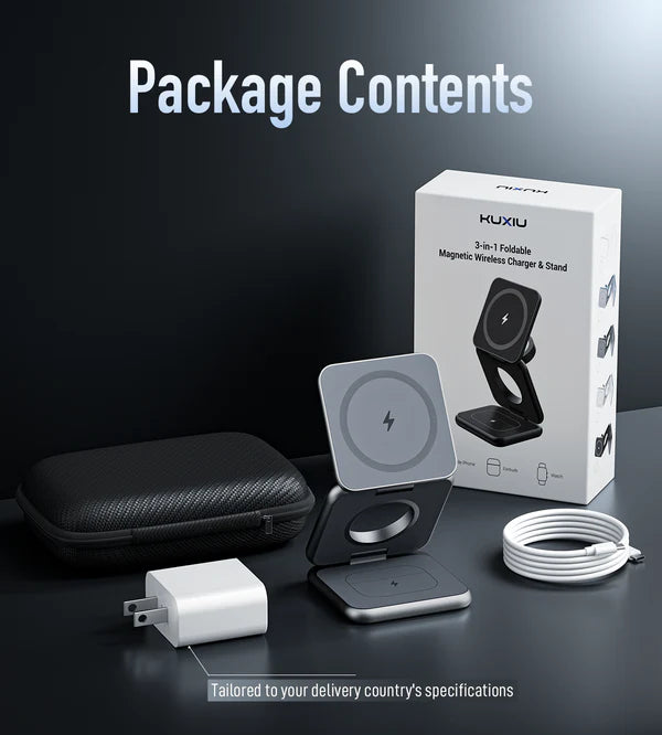 The Omni Wireless Charger delivers a total of 23W charging power: 15W for your phone, 5W for your watch, and 3W for your earbuds. Its built-in smart control system ensures each device charges at full speed without slowing down